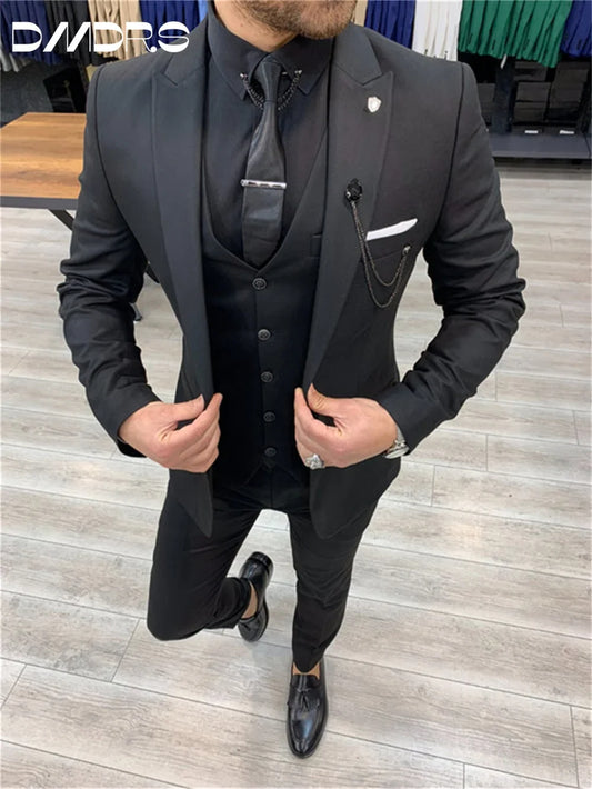 Elegant Groom Tuxedo 3 Pcs Blazer Vest Pants Formal Party Wedding Host Banquet Performance Men's Suits Fashion Men's Clothing