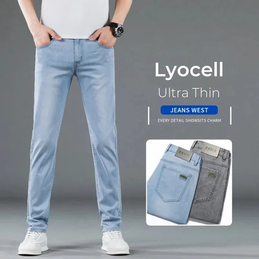 New Spring Summer Thin Lyocell Korean Classic Straight Stretch Fashion Casual Denim Trousers Men's Slim Jeans Brand Clothing